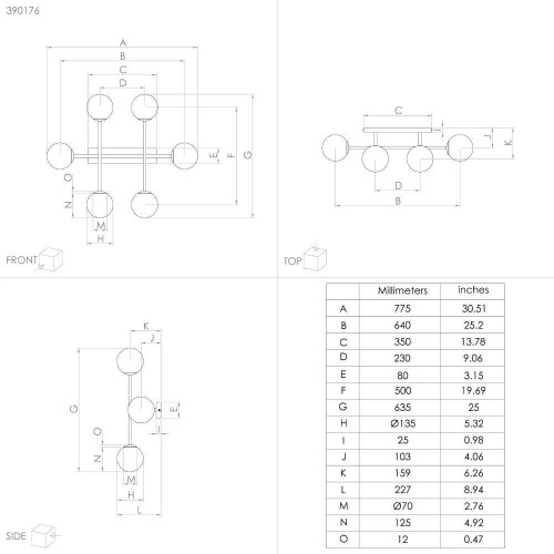 Plafonieră PAZ 390176, E14, 6X40W, IP20, oțel, sticlă opal mat