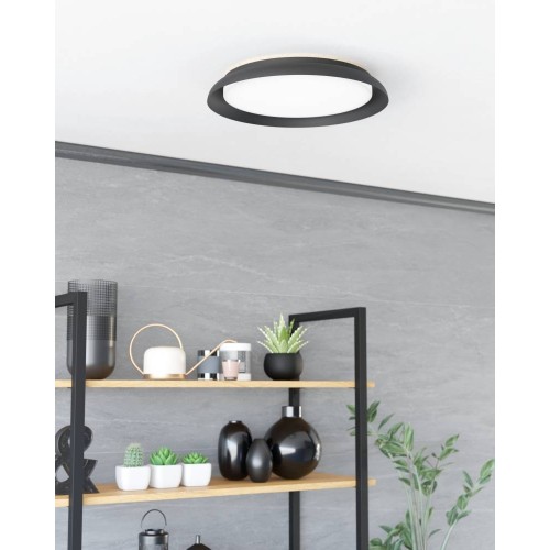 Plafonieră PENJAMO 1 900857, Ø465 mm, LED, 20W, 3000K, IP20, oțel, lemn, negru, maro, plastic, alb