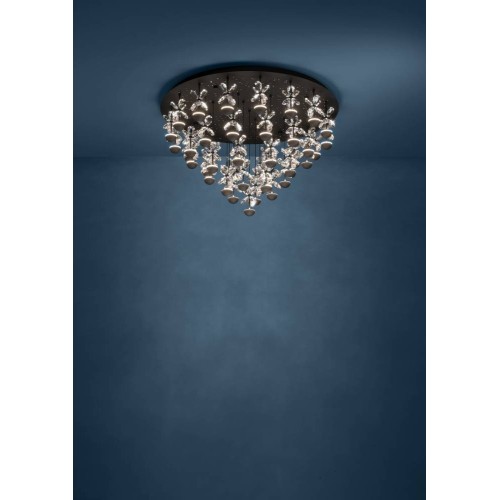 Plafonieră PIANOPOLI 2 390276, Ø780 mm, LED, 43X1,8W, 3000K, IP20, oțel, negru, sticlă, transparentă