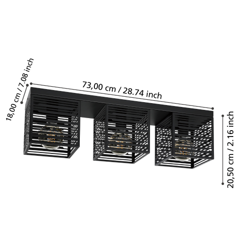 Plafonieră PIEDRITAS 900357, E27, 3X40W, IP20, oțel, negru