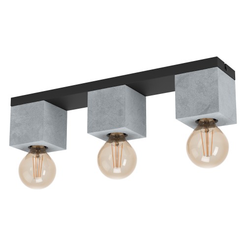 Plafonieră PRESTWICK 3 43596, E27, 3X40W, IP20, oțel, negru, beton, gri