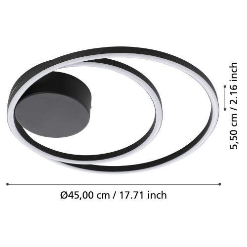 Plafonieră RUOTALE 900471, Ø450 mm, LED, 36W, 3000K, IP20, aluminiu, oțel, negru, plastic, alb