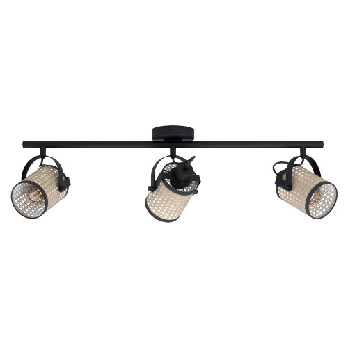 Plafonieră vintage RUSCOMB 43495, E27, 3X10W, IP20, oțel, negru, hârtie, plastic, natural