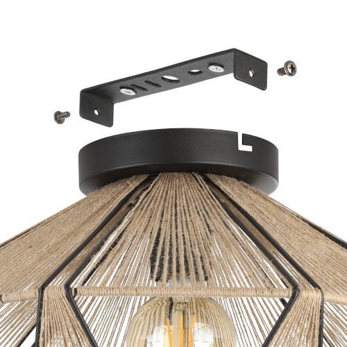Plafonieră vintage ADWICKLE 43775, Ø445 mm, E27, 1X40W, IP20, oțel, negru, textil, natural