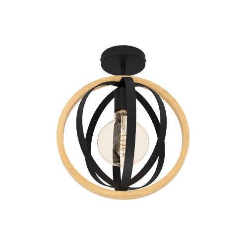 Plafonieră vintage BASILDON 43736, Ø320 mm, E27, 1X40W, IP20, oțel, lemn, negru, maro