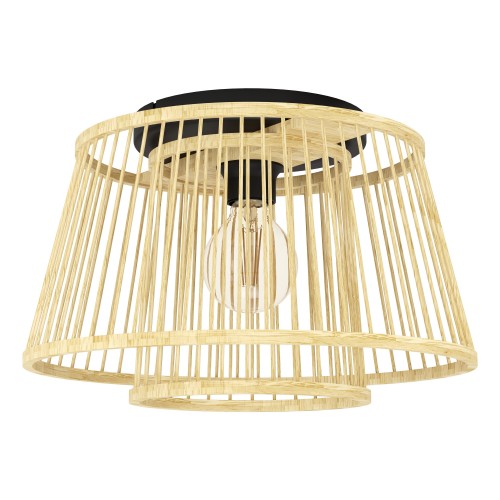 Plafonieră vintage HYKEHAM 43851, Ø380 mm, E27, 1X40W, IP20, oțel, negru, lemn, natural