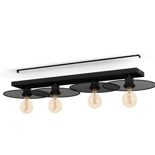 Plafonieră vintage IKESTON 43729, E27, 4X40W, IP20, oțel, negru