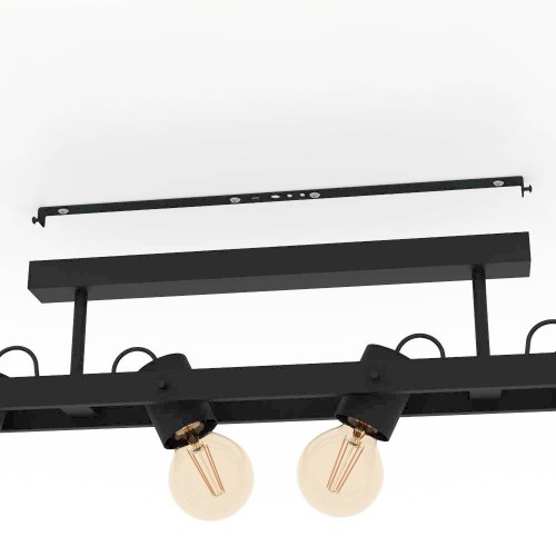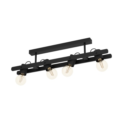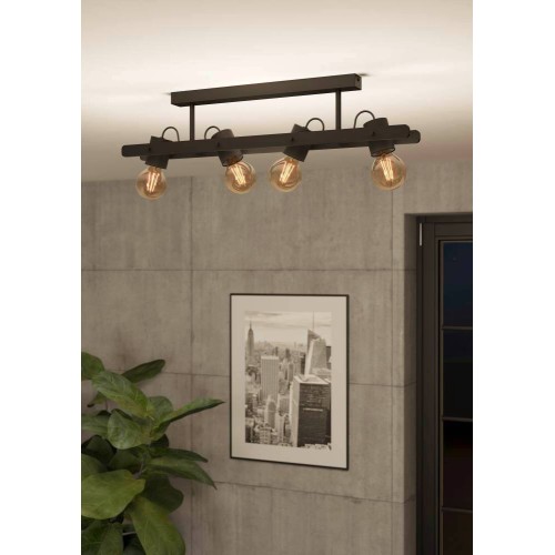 Plafonieră vintage PLIMSOLL 43847, E27, 4X15W, IP20, oțel, lemn, negru