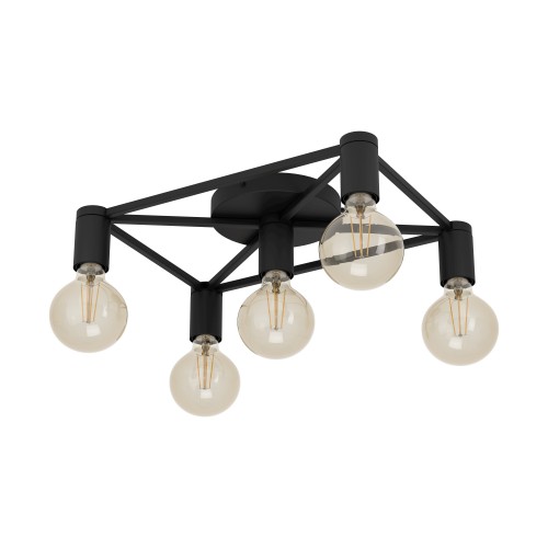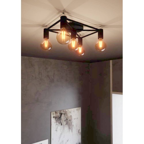 Plafonieră vintage SPEKE 43721, E27, 5X40W, IP20, oțel, negru