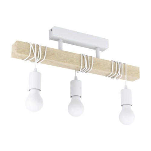 Plafonieră vintage TOWNSHEND 33166, E27, 3X60W, IP20, oțel, alb, lemn, maro