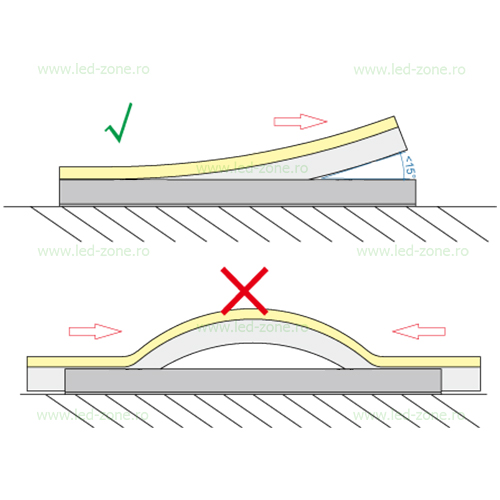 Profilul aluminiu pentru montaj aplicat Neon Flex ultra slim 12V este utilizat in diverse aplicatii cum ar fi: decoruri, scene, contururi cladiri, etc.