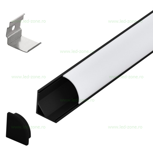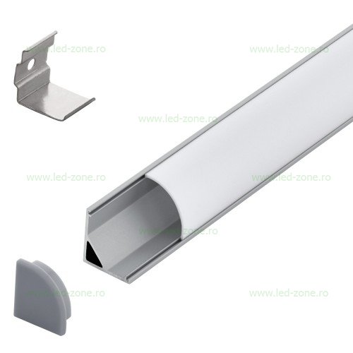 Profil Aluminiu pentru banda LED cu montaj la 90 de grade are dispersor mat convex. Include elementele de capat, bara are lungime 1 metru.