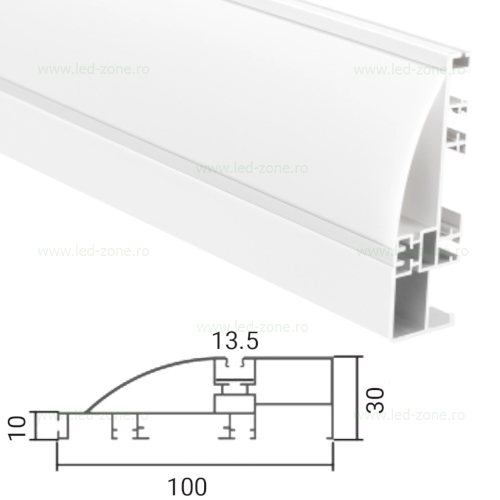 Fabricat din aluminiu de calitate, profilul are o rezistenta sporita la uzura si o durata lunga de viata. Designul sau alb, cu finisaj discret, il face potrivit pentru amenajari moderne, iar dispersorul alb confera un aspect uniform si protejeaza banda LED impotriva prafului si a loviturilor accidentale.