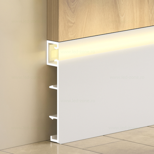 Profil aluminiu aplicat, ideal pentru proiecte de iluminat cu banda LED. Asigura o disipare eficienta a caldurii si un aspect modern datorita dispersorului mat alb care difuzeaza uniform lumina. Potrivit pentru montaj pe podea sau plinta, oferind un finisaj elegant si protectie suplimentara pentru banda LED.