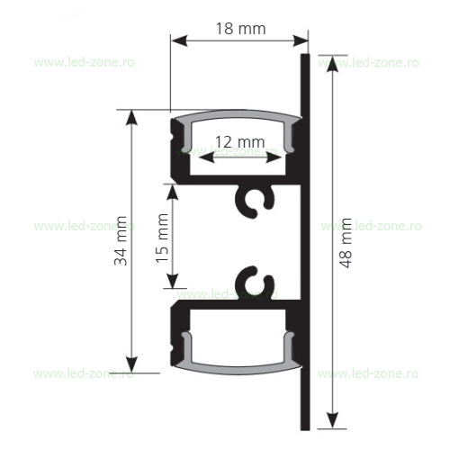 Profilul aluminiu incatrat sau aplicat cu lungime de 1m este compatibil cu banda led 12V/24V - latimea interioara de 12mm.