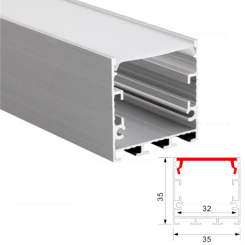 Descriere Profil Aluminiu Aplicat Dispersor Alb 2M 32MM