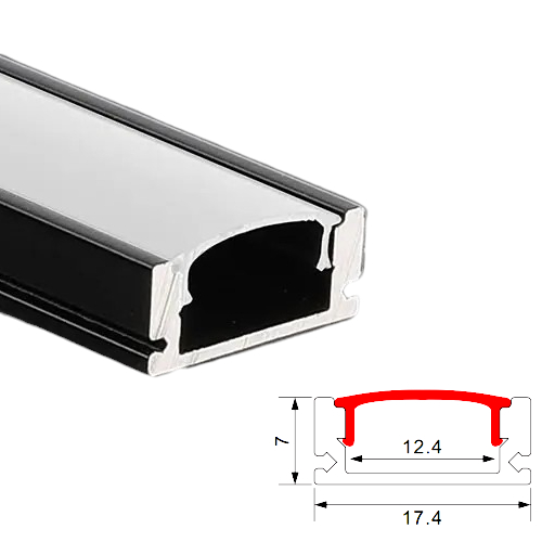 Descriere Profil Aluminiu Aplicat Negru Dispersor Alb 2M 12.4MM