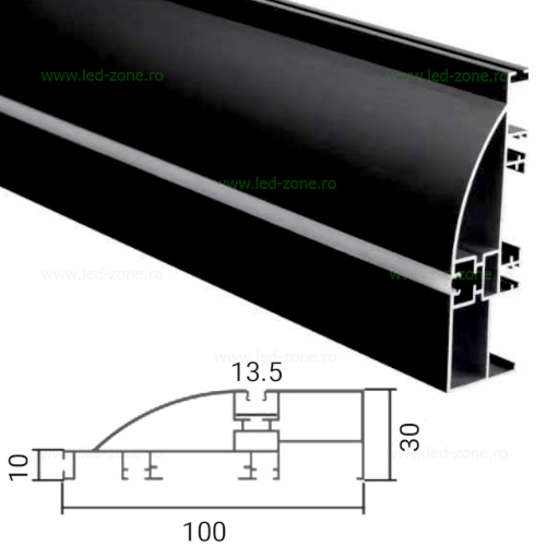 Descriere Profil Aluminiu Aplicat Negru Dispersor Alb 2M 13.5MM Plinta
