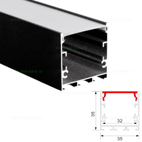 Specificatii Profil Aluminiu Aplicat Negru Dispersor Alb 2M 32MM