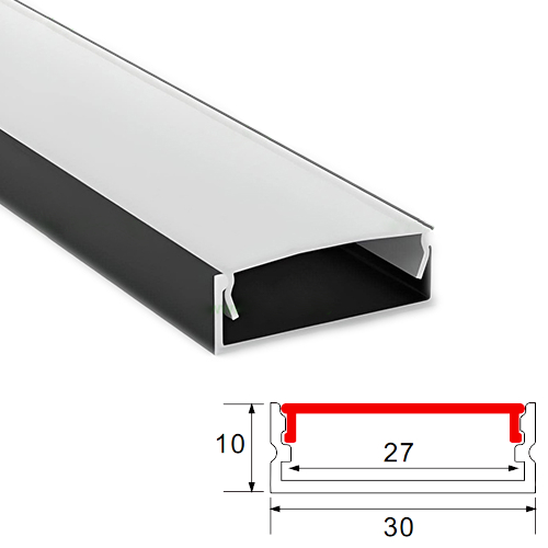 Descriere Profil Aluminiu Aplicat Negru Dispersor Alb 2M 27MM