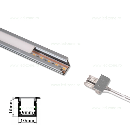Descriere Profil Aluminiu Incastrat Dispersor Alb 3M 8mm cu Banda LED 24V