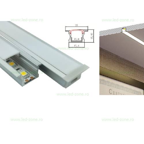 Profilul aluminiu incastrat cu lungime de 1m este compatibil cu banda led - latime pana la 12.6mm.