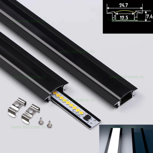 Specificatii Profil Aluminiu Incastrat Negru Dispersor Negru 2M 12.5MM Plat