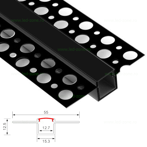 Descriere Profil Aluminiu Incastrat Sub Tencuiala Negru Dispersor Negru 2M 12.7MM