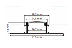 Profilul incastrat sau aplicat cu lungime de 2m este compatibil cu banda led 12V/24V - latimea de 20.7mm.