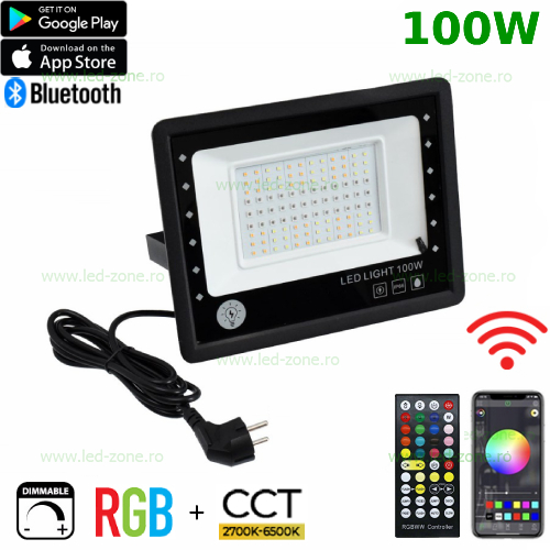 Descriere Proiector LED 100W RGB+CCT Smart Bluetooth cu Telecomanda