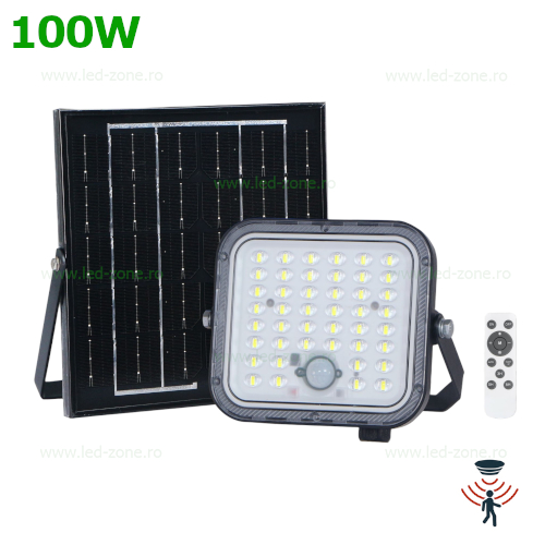 Proiector LED 100W cu Senzor, Panou Solar și Telecomandă TKN