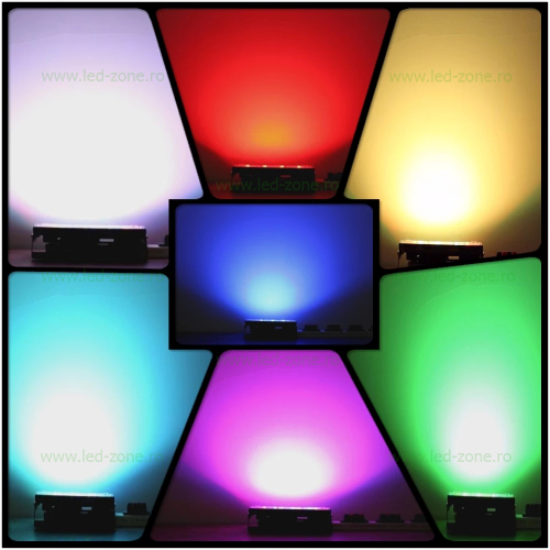Proiectorul LED 20W slim RGB cu telecomanda infrarosu va ofera posibilitatea alegerii unei culori sau a unui program de lumini.