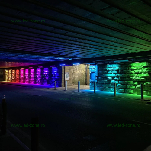 Proiectoarele cu LED liniare RGB sunt utilizate in diverse aplicatii pentru a aduce o multitudine de culori spatiilor luminate, in special fatadelor de cladiri, poduri etc.