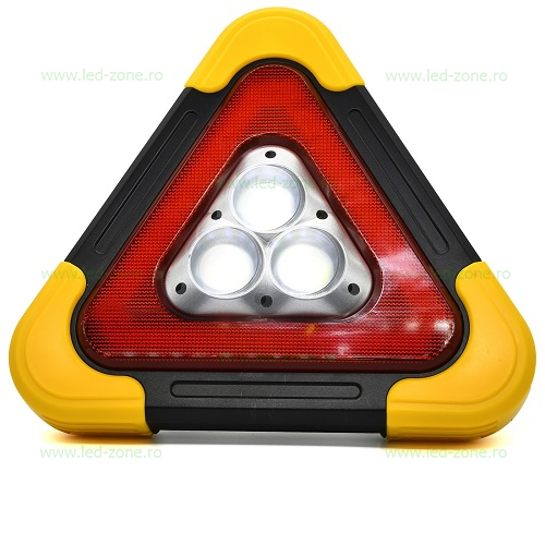 Descriere Proiector LED 3xCOB De Avertizare Triunghi Solar si Acumulator