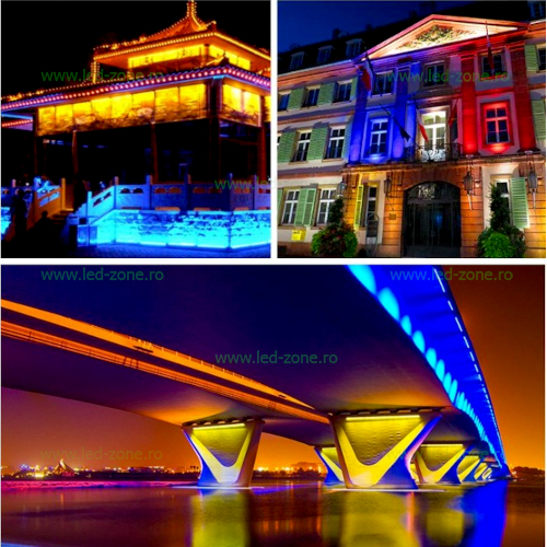 Utilizare recomandata: iluminat arhitectural, fatade, gradini, spatii comerciale, vitrine sau evenimente unde se doreste control dinamic al culorilor si temperaturii luminii.
