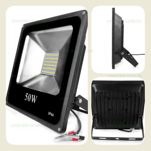 Specificatii Proiector LED 50W Slim SMD 12V Alimentare Clesti
