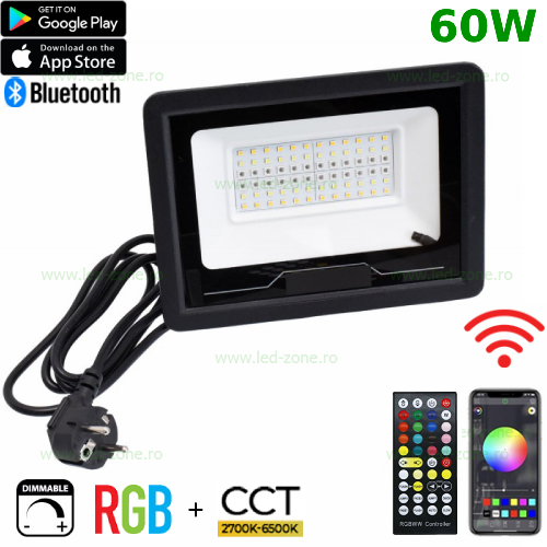 Descriere Proiector LED 60W RGB+CCT Smart Bluetooth cu Telecomanda