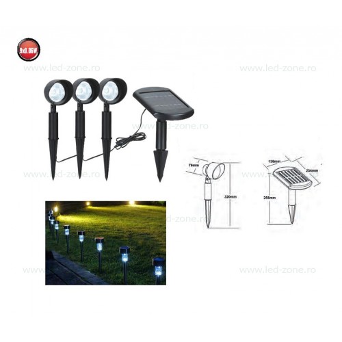 Descriere Proiector LED Gradina Solar Set 3 Bucati MAGIC
