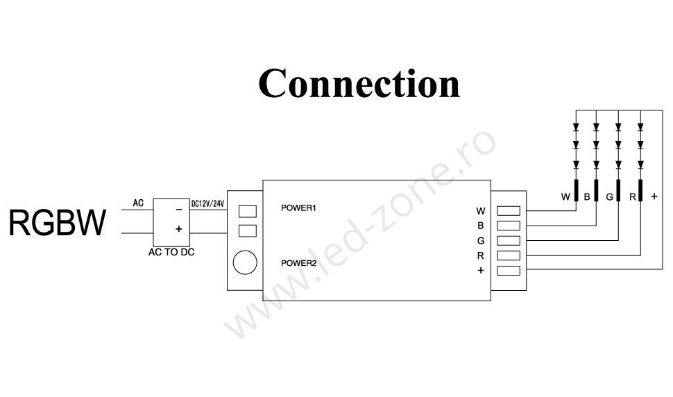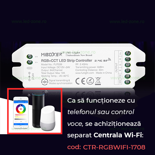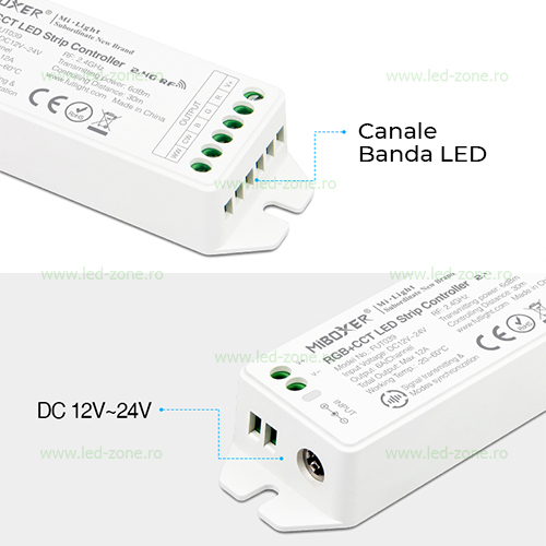 Permite controlul benzilor LED RGB CCT montate in zone diferite, cu aceeasi telecomanda.