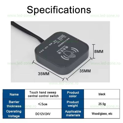 Specificatii Senzor Miscare Mana si Tactil cu Variator 5A 12V-24V