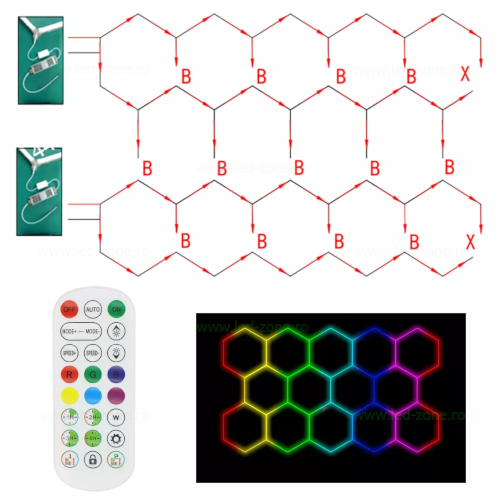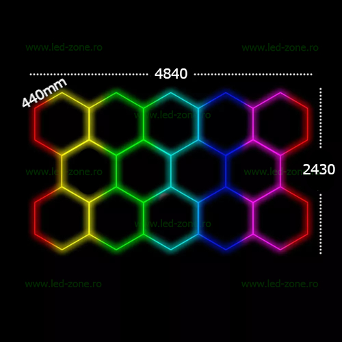 Descriere Set 14 Hexagoane LED Honeycomb RGB Digitale Tuburi 440mm
