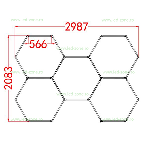 Descriere Set 5 Hexagoane LED Honeycomb 192W Tuburi 566mm