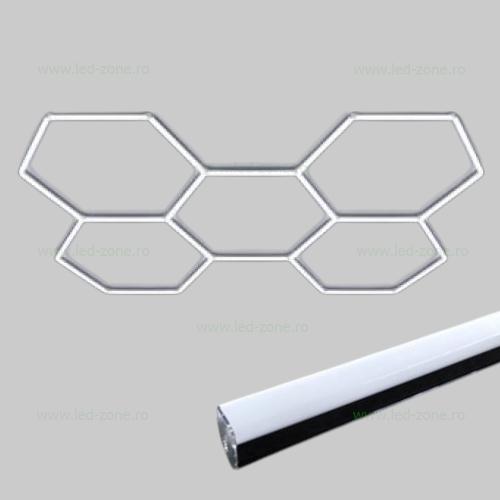 Fiecare hexagon include tuburi LED de 440mm, care permit o distribuire uniformă a luminii pe o suprafață largă. Tuburile LED asigură un flux luminos constant și eficient, fără efecte de umbrire.