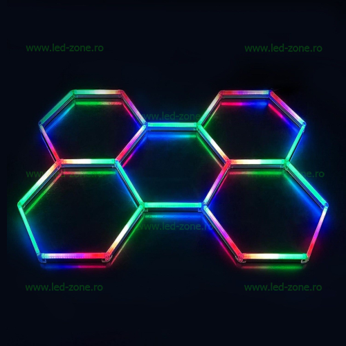 Set 5 Hexagoane LED Honeycomb RGBW, Tuburi 440mm