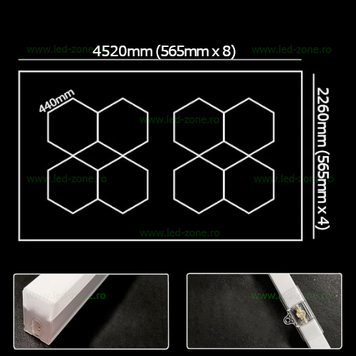Sistemul functioneaza la 220V (cu driver inclus) si este proiectat pentru uz interior (protectie IP20). Instalarea este rapida si intuitiva, iar modularitatea sistemului permite adaptarea sa la orice tip de proiect sau spatiu.