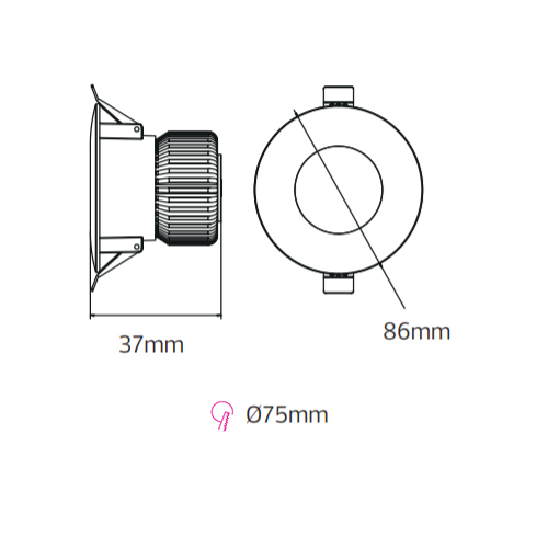 | Dimensiuni / Gaura montaj | ⌀86x37mm / ⌀75mm |