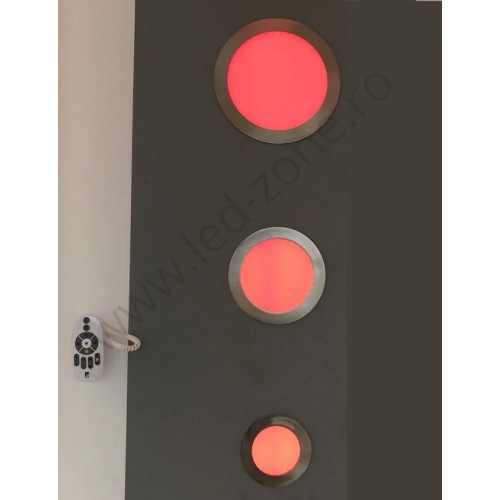 Spoturile LED Slim RGB + White Premium pot fi controlate cu telecomanda, telefonul mobil sau tableta, mai multe spoturi in acelasi timp.