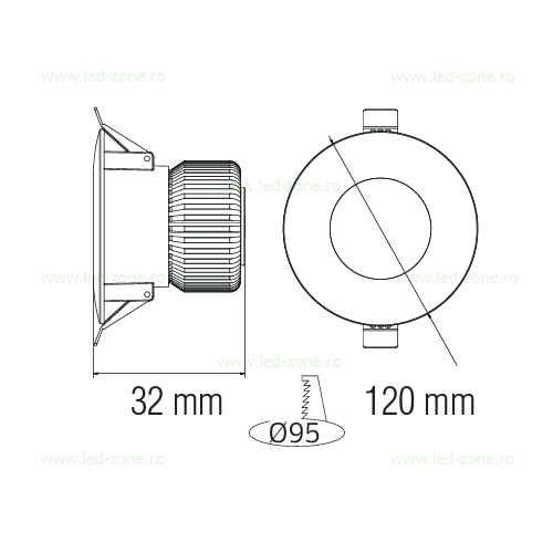 | Dimensiuni / Gaura montaj | ⌀120x32mm / ⌀95mm |