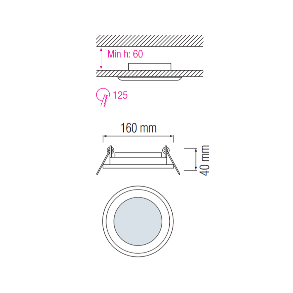 | Dimensiuni / Gaura montaj | ⌀160x40mm / ⌀125mm |