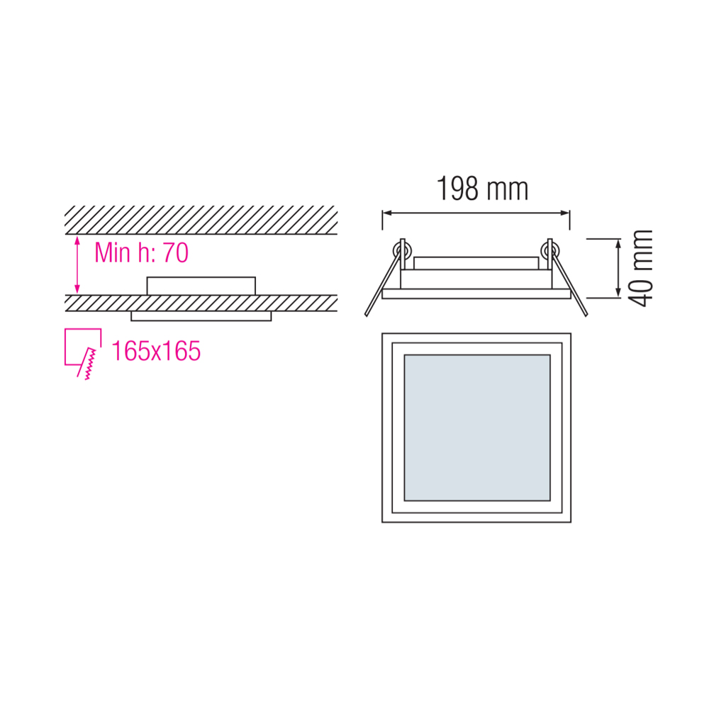 | Dimensiuni / Gaura montaj | 198x198x40mm / 165x165mm |